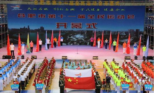 為貫徹落實(shí)全民健身國(guó)家戰(zhàn)略,展示合肥市民昂揚(yáng)向上、奮發(fā)進(jìn)取的精神風(fēng)貌,進(jìn)一步提高市民身體素質(zhì)、健康水平,2016年8月8日晚18時(shí),由合肥市人民政府主辦、合肥市體育局、各縣(市)區(qū)開發(fā)區(qū)、合肥市體育總會(huì)承辦的合肥市第十一屆全民運(yùn)動(dòng)會(huì)在合肥體育中心體育館隆重開幕。省委常委、市委書記吳存榮宣布運(yùn)動(dòng)會(huì)開幕,市委常委、常務(wù)副市長(zhǎng)韓冰致開幕詞,副市長(zhǎng)吳春梅主持開幕式。