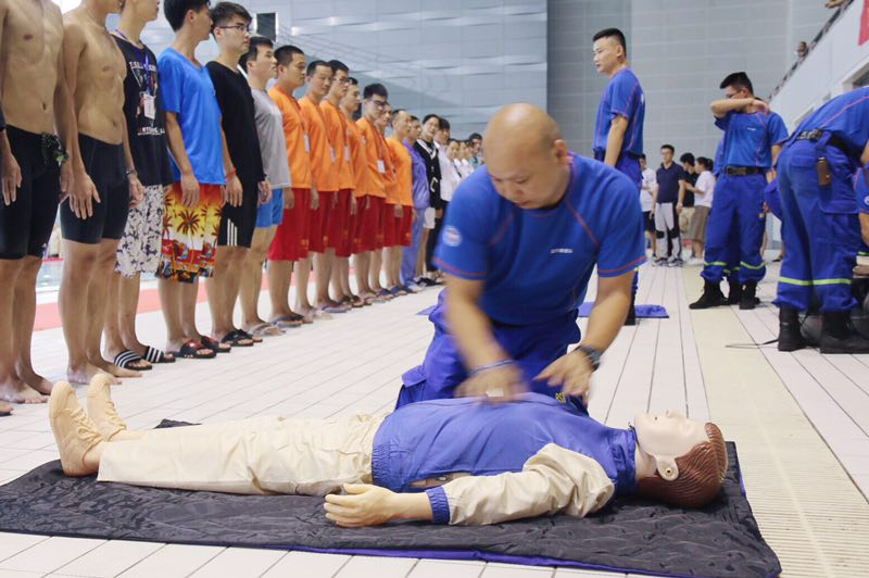 救生演練特邀中國紅十字會和藍天救援隊的教官,教官首先向參訓人員講解水上救生相關知識,如發(fā)現溺水者后如何報警求助、如何進行施救、如何利用救生工具、如何將溺水者救助上岸、如何進行急救心肺復蘇等救生基本知識、步驟和方法。隨后,教官用“假人模特”手把手地進行實操,演示進行心肺復蘇實踐操作,并讓每一名參訓人員實際體驗和感受。演練中,全體人員積極參與,分工合作,默契配合。在教官的指導下,利用救生工具進行了實際演練,圓滿完成了演練活動。