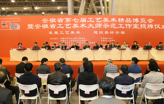 1110日至12日,安徽省第七屆工藝美術(shù)精品博覽會在安徽國際會展中心舉辦。1110日上午舉行展會啟動暨安徽省工藝美術(shù)大師示范工作室授牌儀式。