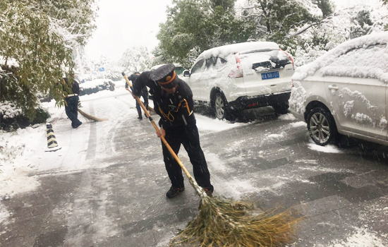 雪情就是命令!面對忽至的大雪,濕滑的路面,政文外灘物業(yè)各個項(xiàng)目為保障項(xiàng)目道路、車庫出入口暢通、業(yè)主出行安全,在漫天飛雪中,負(fù)有責(zé)任心的政文外灘物業(yè)人無畏大風(fēng)暴雪,連夜清掃積雪,無懼大雪濕透衣衫,只為業(yè)主出行方便!