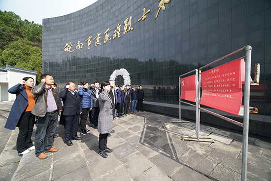 在新四軍軍部舊址紀(jì)念館,大家仔細觀看了文物和史料圖片,認(rèn)真聆聽講解員介紹新四軍建立的過程、“皖南事變”經(jīng)過及事變后新四軍的發(fā)展情況。在新四軍“皖南事變”烈士陵園,向烈士們致哀并敬獻了花籃,全體黨員面向鮮紅的黨旗,公司黨支部書記羅欽帶領(lǐng)大家重溫了入黨誓詞。站在老一輩無產(chǎn)階級革命家浴血奮戰(zhàn)的紀(jì)念地,回憶那戰(zhàn)火紛飛的崢嶸歲月,沿著歷史的脈絡(luò)再現(xiàn)新四軍的戰(zhàn)斗歷程和英勇事跡,實地感受了在艱苦的物質(zhì)條件和復(fù)雜斗爭環(huán)境下,為了實現(xiàn)中華民族的偉大復(fù)興,無數(shù)革命先烈矢志不渝的堅定信念、勇于犧牲的英雄氣概和不屈不撓的奮斗精神,深深地觸動在場每位黨員的心靈。