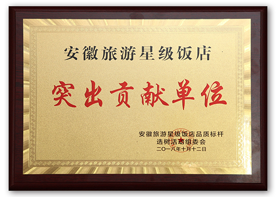 2018年10月12日,“首屆安徽旅游星級(jí)飯店品質(zhì)標(biāo)桿選樹”活動(dòng)成果發(fā)布會(huì)在天鵝湖大酒店隆重舉行,在經(jīng)過專家評(píng)審綜合評(píng)審后,合肥泓瑞金陵大酒店獲得“安徽旅游星級(jí)飯店突出貢獻(xiàn)單位”榮譽(yù)。