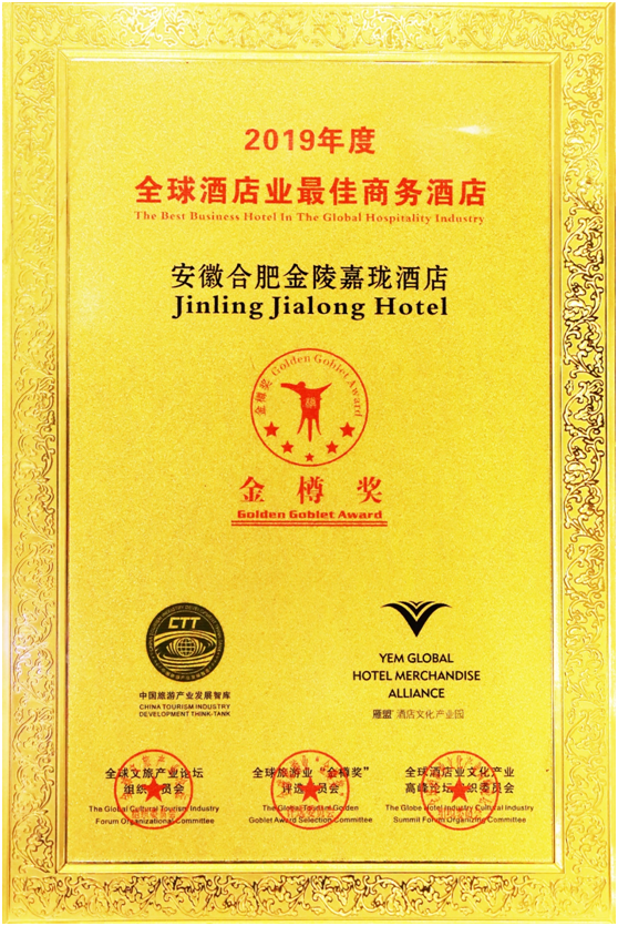 2019年5月18-19日,合肥金陵嘉瓏酒店應(yīng)邀出席在深圳維納斯皇家酒店舉辦的2019全球文旅產(chǎn)業(yè)論壇&2019全球酒店業(yè)文化產(chǎn)業(yè)高峰論壇&第十一屆全球旅游業(yè)金樽獎(jiǎng)、馬可波羅勛章頒獎(jiǎng)盛典,并榮獲2019年度金樽獎(jiǎng)“全球酒店業(yè)最佳商務(wù)酒店”企業(yè)獎(jiǎng)。