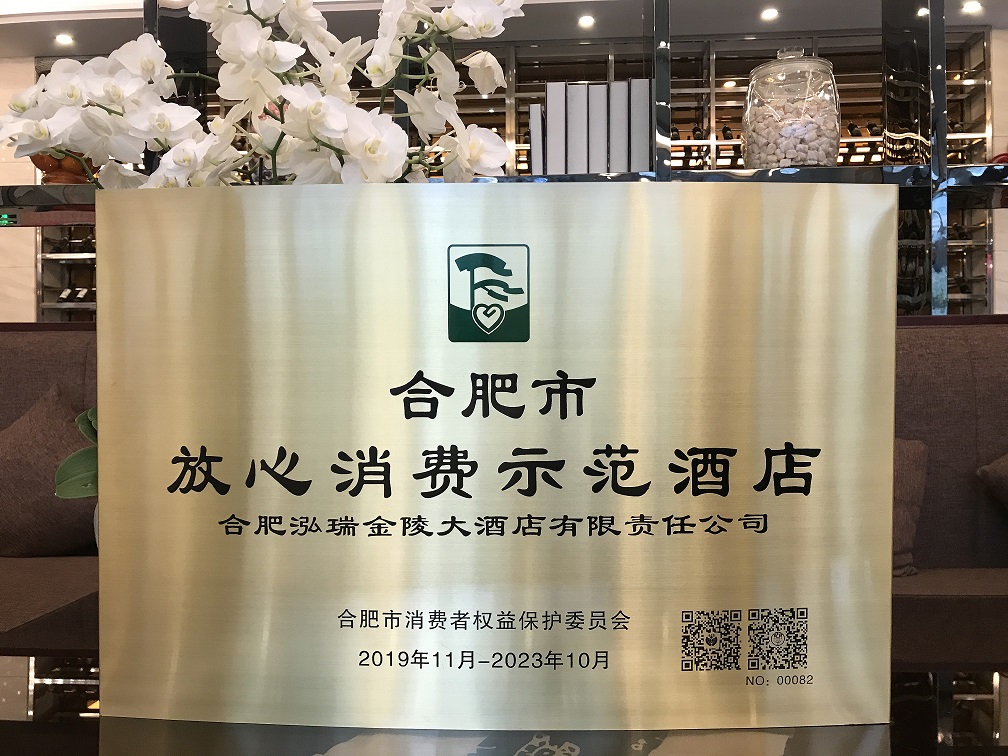 1月16日,合肥市放心消費示范單位授牌儀式在民生大廈舉行,合肥泓瑞金陵大酒店被授予“放心消費”示范酒店稱號。
