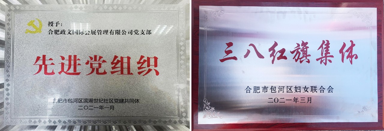 3月4日政文會展公司一日兩獲殊榮。公司黨支部連續(xù)三年獲評濱湖世紀(jì)社區(qū)“先進(jìn)黨組織”、“優(yōu)秀共建共治單位”榮譽(yù)稱號;公司會務(wù)部獲評“2020年包河區(qū)三八紅旗集體”榮譽(yù)稱號。