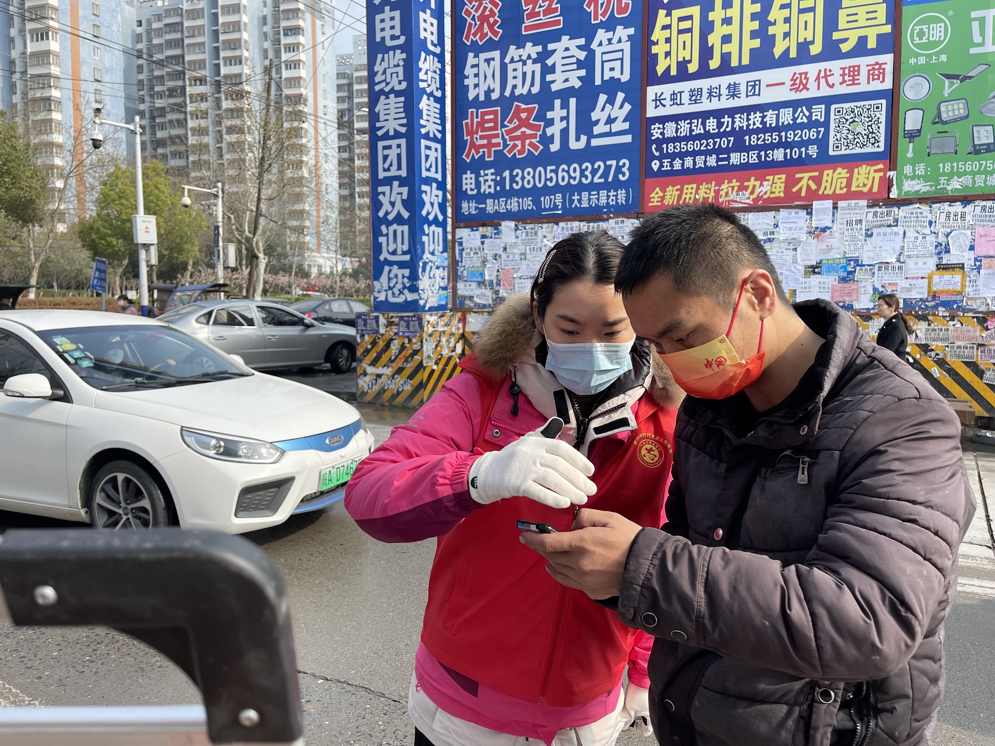 “我報(bào)名?!痹诮拥街驹阜?wù)號(hào)召后,1歲半孩子的寶媽胡金金第一時(shí)間向黨組織表達(dá)了參加志愿服務(wù)的強(qiáng)烈愿望。胡金金所值守的卡點(diǎn)是五金商貿(mào)城,由于外省貨車較多,疫情防控責(zé)任較重。胡金金耐心引導(dǎo)貨車師傅們掃碼測(cè)溫。