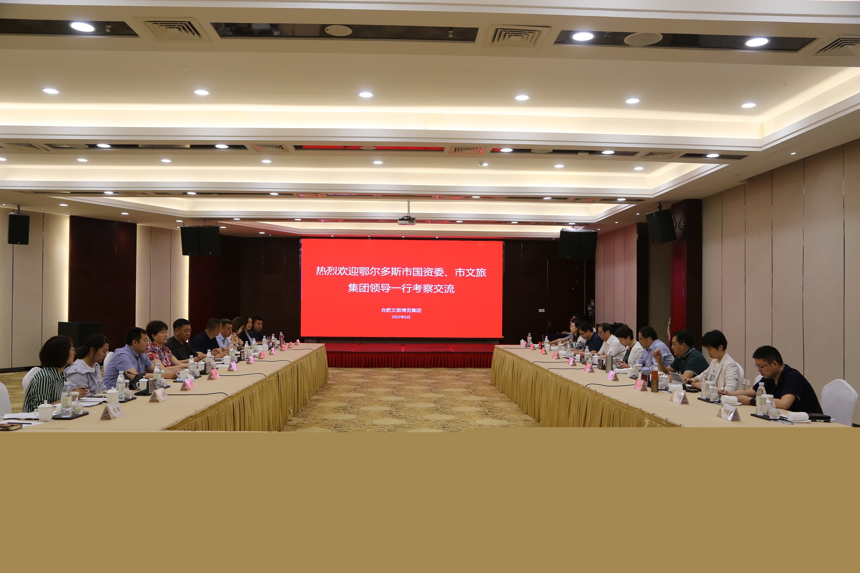 6月 11日,在集團總經濟師張大頃陪同下,調研組一行實地考察了廬江云里安凹、六家畈、合肥濱湖濕地公園等我市文旅項目,鄂爾多斯客人對我市近年來大力發(fā)展文旅產業(yè)的好做法高度認可,對全市文旅產業(yè)發(fā)展取得成績表示贊賞。為進一步深化合作交流,12日上午,雙方在泓瑞金陵大酒店召開座談會。座談會上,尹傳桂總經理對鄂爾多斯市國資委、市文旅集團一行的來訪表示熱烈歡迎,并介紹了集團的發(fā)展運營情況。近年來,集團緊緊圍繞改革三年行動方案和國有資本運營公司試點方案,以黨建為引領,以改革為動能,以市場為導向,以資本為紐帶,以整合為手段,以創(chuàng)新為路徑,以發(fā)展為目標,逐步形成以“旅游、會展產業(yè)”為主導,“文化、體育產業(yè)”為重點,“酒店、物業(yè)”為支撐,“教育、康養(yǎng)”融合發(fā)展的產業(yè)發(fā)展格局。隨后,會展和酒店主要負責人就酒店板塊、會展板塊運營情況進行分享。