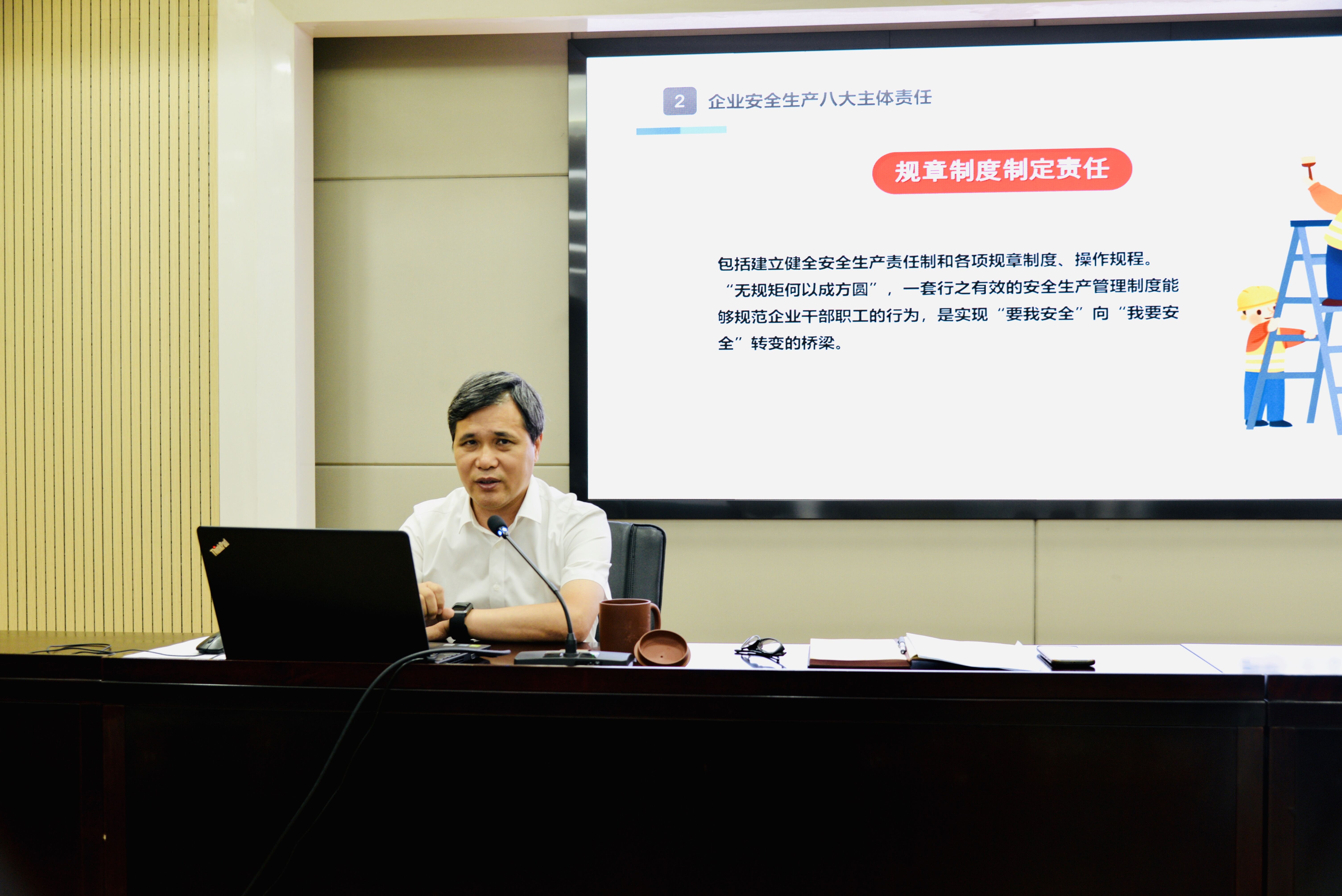 最后,陳杰董事長(zhǎng)為大家講授了一堂生動(dòng)的安全課,分別以 “東航事故”和“長(zhǎng)沙自建房倒塌事故”為例,帶領(lǐng)大家學(xué)習(xí)習(xí)近平總書(shū)記關(guān)于安全生產(chǎn)重要論述;以《安全生產(chǎn)法》為依據(jù),分析企業(yè)安全生產(chǎn)八大主體責(zé)任;以觀看典型事故案例為警示,分析事故原因、責(zé)任認(rèn)定以及事故暴露的問(wèn)題;以安全生產(chǎn)主體責(zé)任“五落實(shí)五到位”為具體內(nèi)容,要求各單位以案為鑒,加強(qiáng)源頭防范和日常監(jiān)管,全面落實(shí)安全生產(chǎn)主體責(zé)任。