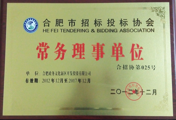 合肥市招投標(biāo)協(xié)會“常務(wù)理事單位”榮譽(yù)稱號