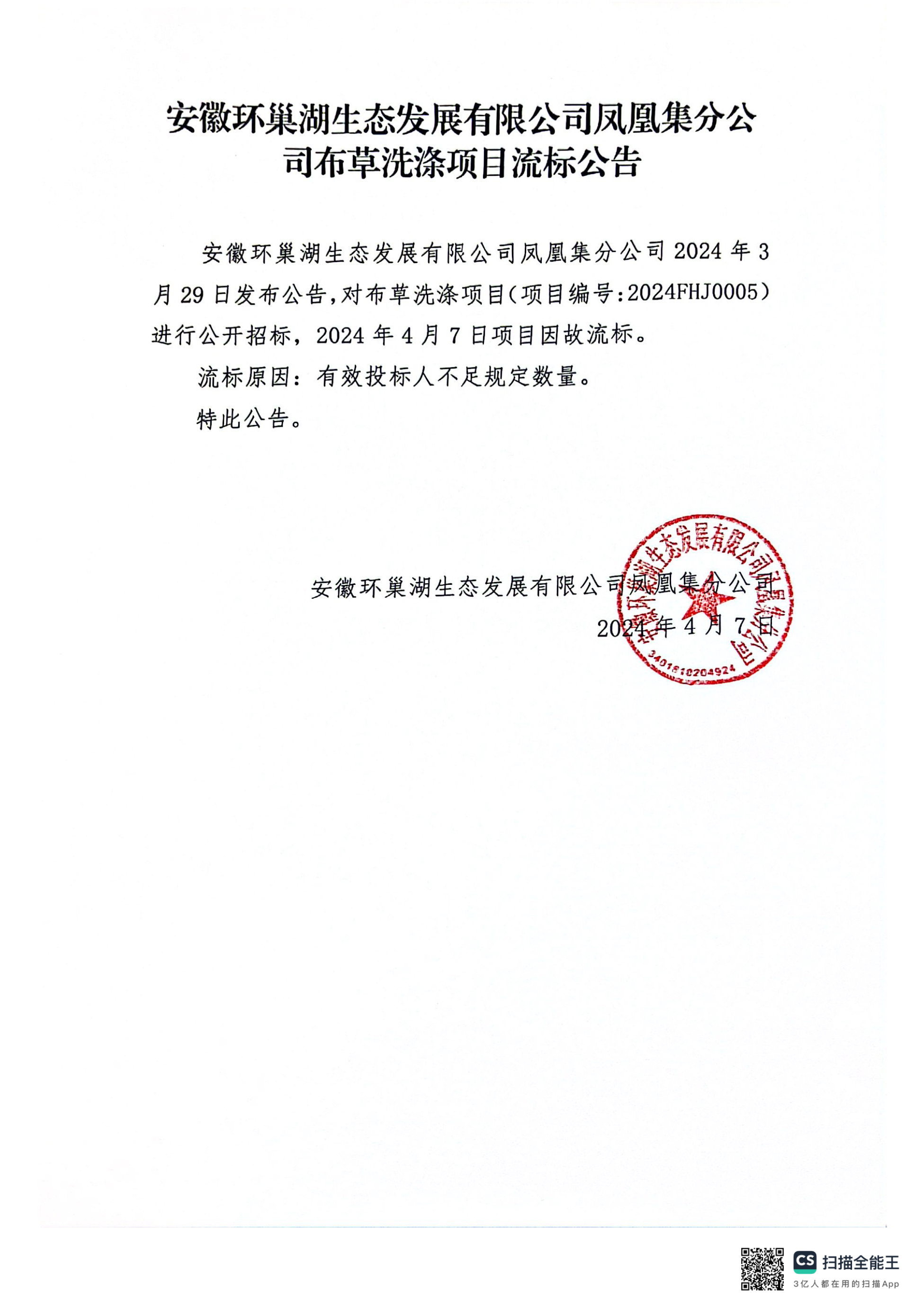 鳳凰集布草洗滌流標(biāo)公告