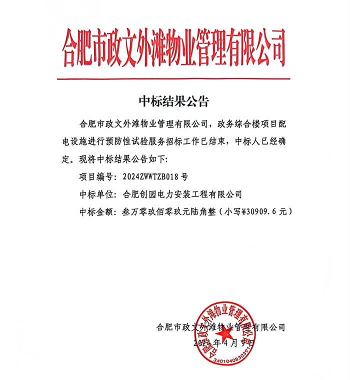 政務(wù)綜合樓項目配電設(shè)施進(jìn)行預(yù)防性試驗服務(wù)項目中標(biāo)結(jié)果公告