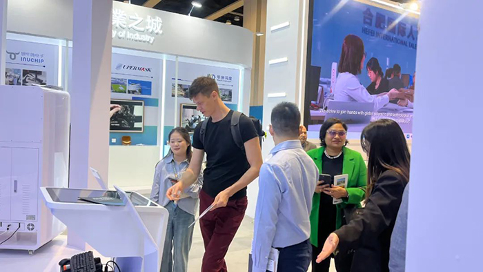 本次科創(chuàng)展合肥市以特裝展位形式,設(shè)置了總面積為180平方米的合肥市主題展廳,共有安徽省東超科技有限公司、科大訊飛股份有限公司、孿生科技、科大硅谷等合肥市重點(diǎn)產(chǎn)業(yè)鏈優(yōu)質(zhì)企業(yè)參展,布展以數(shù)字與實(shí)體相結(jié)合的方式呈現(xiàn)合肥最新科技創(chuàng)新成果。