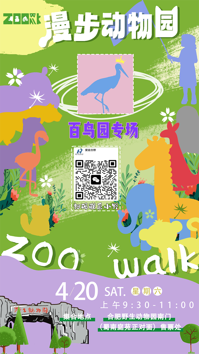 4月18日11:00在群內(nèi)發(fā)布搶票鏈接,報(bào)名來合野參加4月20日Zoowalk百鳥園專場:通過觀察動物自然行為,參與動物科普互動,用講故事的方式帶領(lǐng)大家和一起了解和認(rèn)識各種鳥類。