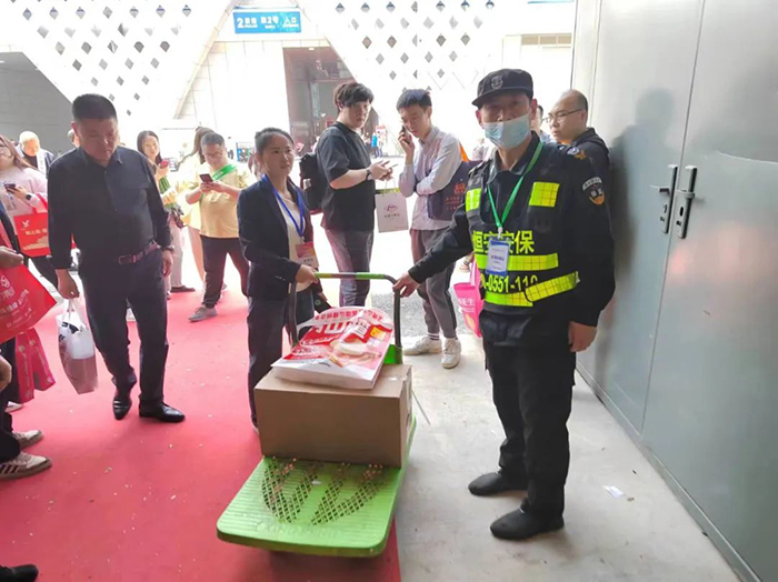 安保人員在人員密集場所持續(xù)巡查,排查各類隱患,維護(hù)展會(huì)的安全秩序。