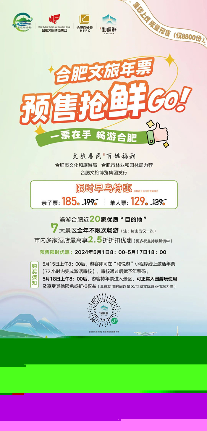 在此基礎(chǔ)上,合肥文旅年票的發(fā)售,進(jìn)一步增強合肥旅游黏性,提升惠民便民水平,為市民帶來實實在在的便利與福利。