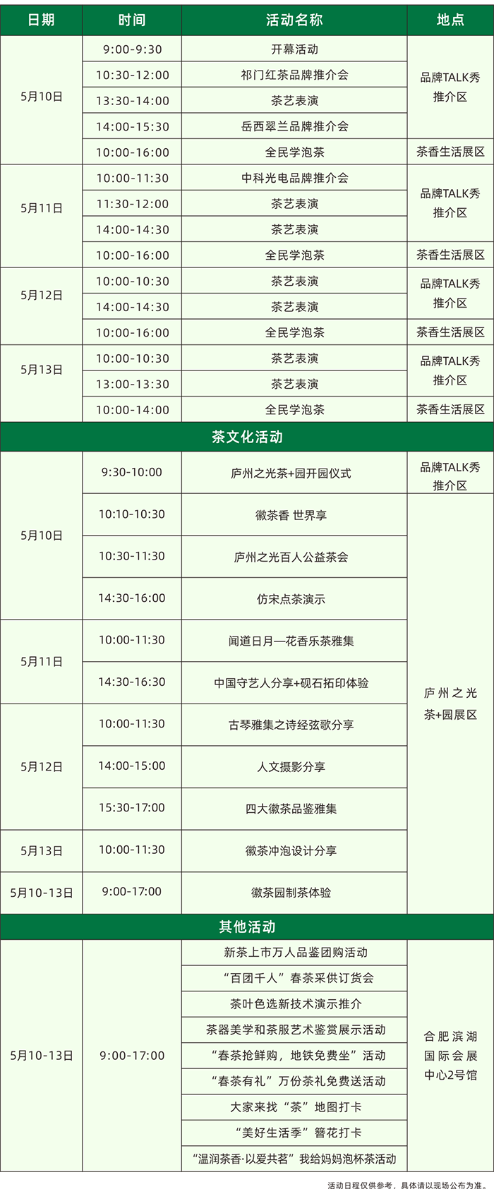 本次展會現(xiàn)場除了能買到皖美徽茶、全國名茶,各類精美茶器、精致茶食、精巧茶文創(chuàng)外,更有超多福利+精彩活動: