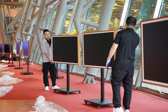 搬運擺放畫屏用于現(xiàn)場氛圍營造