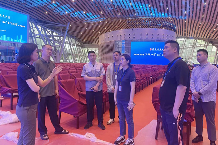 在接到本次任務(wù)后,政文會展項目組成員積極召開協(xié)調(diào)會,進(jìn)行任務(wù)明確分工,從現(xiàn)場舞臺搭建、館內(nèi)安全巡邏、大會氛圍營造、貴賓接待保障等方面做到節(jié)節(jié)相連,環(huán)環(huán)相扣,步步到位。