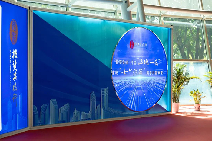 政文會展從上月參加的第二屆香港國際創(chuàng)科展中開拓思路,在本次大會現(xiàn)場氛圍營造中使用了京東方55寸直顯畫屏和MiniLED拼接屏,多方面聯(lián)動,多領(lǐng)域融合,現(xiàn)場諸多嘉賓駐足觀看,深度了解安徽文化、旅游資源和安徽產(chǎn)品等。