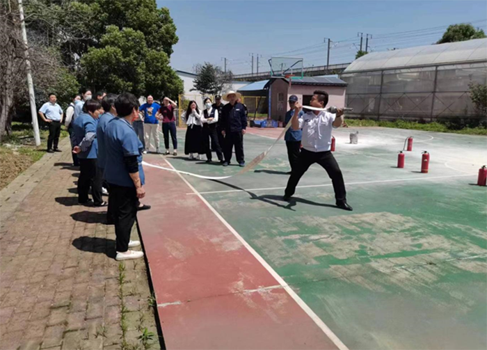 同時,為進一步提升處置突發(fā)火災能力,項目全體人員現(xiàn)場實操學習了滅火器、消防水帶的使用方法。消防人員進行演示并一對一指導員工對現(xiàn)場設置的小型模擬火堆進行滅火實操演練。