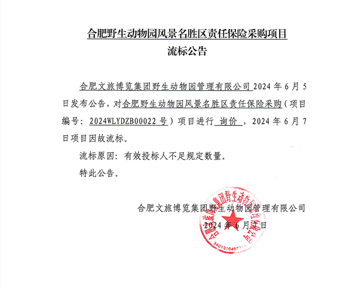 合肥野生動(dòng)物園風(fēng)景名勝區(qū)責(zé)任保險(xiǎn)采購(gòu)項(xiàng)目流標(biāo)公告