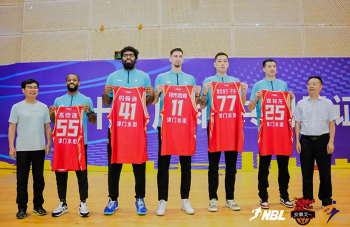 安徽文一三名外援達卡里·約翰遜、托米斯拉夫·祖布西奇和皮埃爾·杰克遜以及兩名國內新援鄭祺龍和阿克卓力·巴海在當天的出征活動中閃亮登臺,合肥市體育局黨組書記李仲生和文一集團執(zhí)行總裁寧世明共同向五名新援授予球衣。
