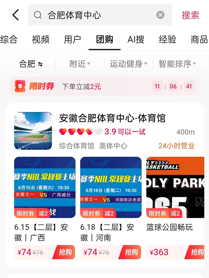 抖音搜索合肥體育中心即可團購購票