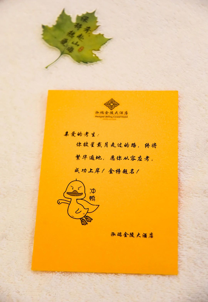 泓瑞金陵大酒店特設高考專屬房間,安靜的備考空間與貼心的居住環(huán)境,讓考生們心無旁騖,專注前行!