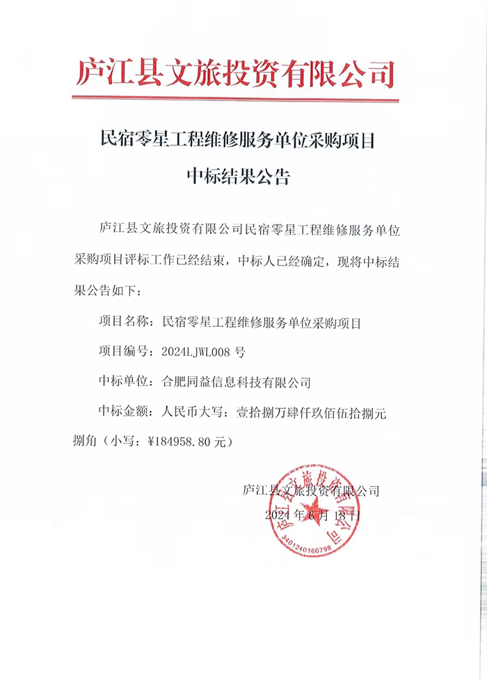 時間:2024-06-18 14:50:24 廬江縣文旅投資有限公司 瀏覽:1391