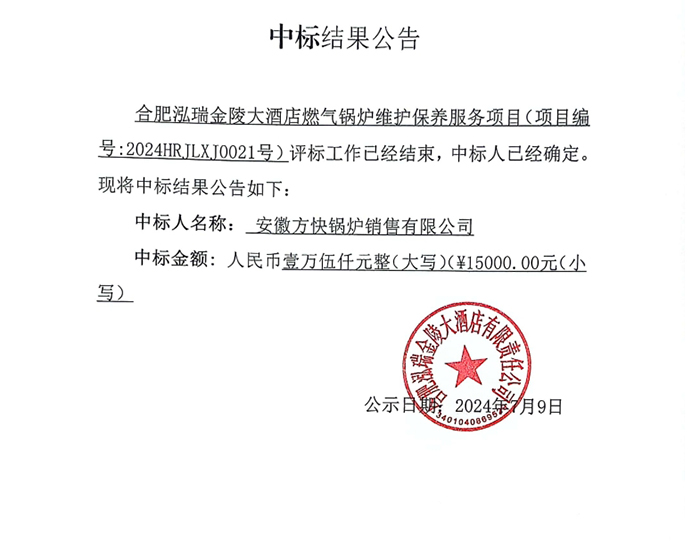 合肥泓瑞金陵大酒店燃?xì)忮仩t維護(hù)保養(yǎng)服務(wù)項(xiàng)目