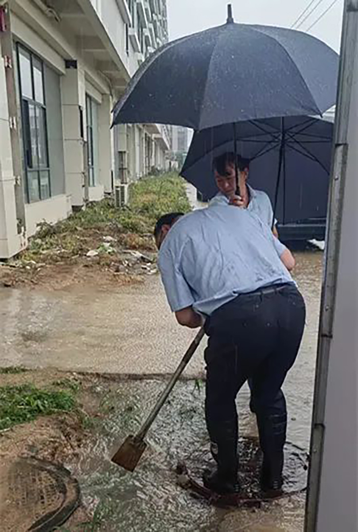 雨聲就是哨聲,堅守就是責任。面對強降雨,公司嚴格落實防汛值班制度;領導堅守一線,動態(tài)跟蹤雨情變化,突出關鍵部位和薄弱環(huán)節(jié),24小時嚴陣以待、嚴密布防;各應急分隊充分發(fā)揚連續(xù)作戰(zhàn)精神,眾多員工放棄休息時間,全身心地投入到防汛工作的第一線。他們徒手疏通排水管道、冒雨挖排水通道,排除積水險情,做好關鍵點位的應急維修工作。泥巴裹滿褲腿、汗水和著雨水浸透全身,大家依然堅守“陣地”,不放過任何一處細節(jié)和安全隱患。