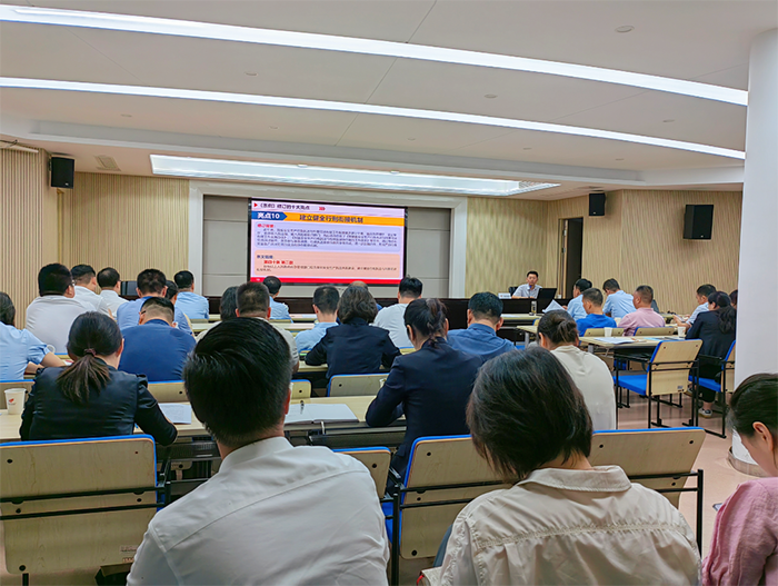 《條例》解讀后,集團(tuán)總經(jīng)理尹傳桂同志親自授課。以習(xí)近平總書記關(guān)于安全生產(chǎn)的重要論述和指示精神為指引,結(jié)合集團(tuán)實(shí)際,就安全生產(chǎn)管理體系建設(shè)、雙重預(yù)防機(jī)制實(shí)施、事故警示教育及安全知識普及等方面進(jìn)行闡述。通過剖析近期發(fā)生的典型事故案例,尹總進(jìn)一步強(qiáng)化了全員對安全生產(chǎn)工作重要性的認(rèn)識,并要求各級負(fù)責(zé)人必須牢固樹立“安全第一、預(yù)防為主”的理念,切實(shí)擔(dān)負(fù)起安全生產(chǎn)主體責(zé)任,共同構(gòu)筑堅(jiān)不可摧的安全防線。