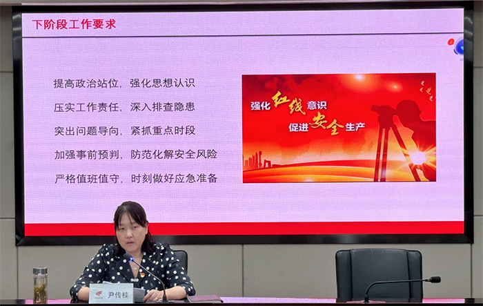 最后,尹傳桂總經(jīng)理就下階段安全生產(chǎn)工作提出了五點(diǎn)要求:一是要提高政治站位,強(qiáng)化思想認(rèn)識,始終保持對安全生產(chǎn)的高度警覺;二是要壓實(shí)工作責(zé)任,深入排查隱患,確保各項(xiàng)安全措施有效落地;三是要突出問題導(dǎo)向,緊抓重點(diǎn)時(shí)段,加強(qiáng)風(fēng)險(xiǎn)管控和應(yīng)急準(zhǔn)備;四是要加強(qiáng)事前預(yù)判,防范化解安全風(fēng)險(xiǎn),不斷完善應(yīng)急響應(yīng)機(jī)制;五是要嚴(yán)格值班值守,確保信息暢通無阻,以便在緊急情況下能夠迅速、準(zhǔn)確、有效地進(jìn)行處置。