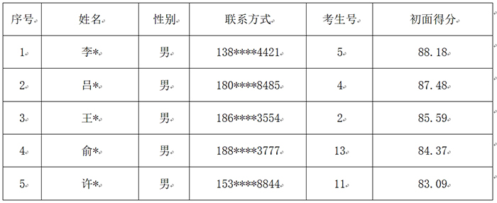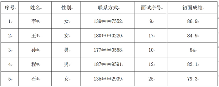 三、面試(初試)前5名進(jìn)入下一輪復(fù)面環(huán)節(jié),復(fù)面相關(guān)事宜另行通知,請保持電話暢通。