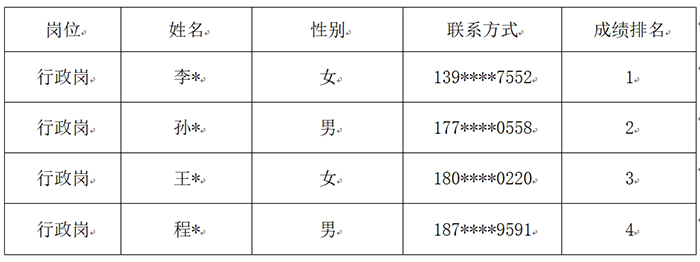 根據(jù)《合肥文旅金陵酒店管理有限公司總經(jīng)理助理等招聘公告》安排,本次招聘終面環(huán)節(jié)已結(jié)束,現(xiàn)將終面成績(jī)公告如下: