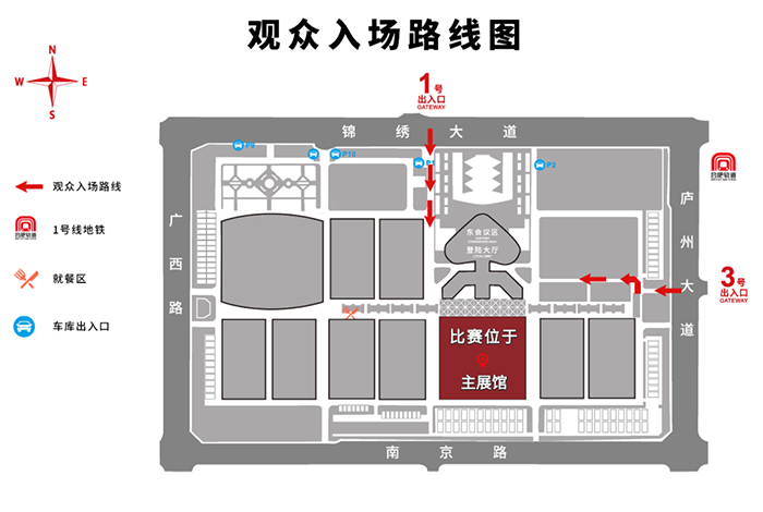 ※所有取得資格的訓(xùn)練家務(wù)必在規(guī)定入場時間內(nèi)完成核銷。若逾期未核銷,我們將一律視其為主動棄權(quán),該訓(xùn)練家將無法參加本次賽事?!鶕?jù)實際情況,現(xiàn)場比賽時間可能會進行調(diào)整。請訓(xùn)練家留意現(xiàn)場公告及廣播,咨詢現(xiàn)場裁判。1. 選手及觀眾請由上圖所示錦繡大道1號道口及廬州大道3號道口進出。2. 自駕車輛請沿現(xiàn)場指引前往地下停車場有序停放。3. 本活動免費入場,公開組、少年組、兒童組選手還需另外核銷,請各位訓(xùn)練家合理安排時間。4. 未滿14周歲的訓(xùn)練家參與本賽事均需監(jiān)護人簽署《未成年人參賽確認書》,可于現(xiàn)場簽署或提前打印后簽署,并在核銷時交付工作人員。14周歲以下的訓(xùn)練家即使提前打印簽署,當日仍需監(jiān)護人陪同 。