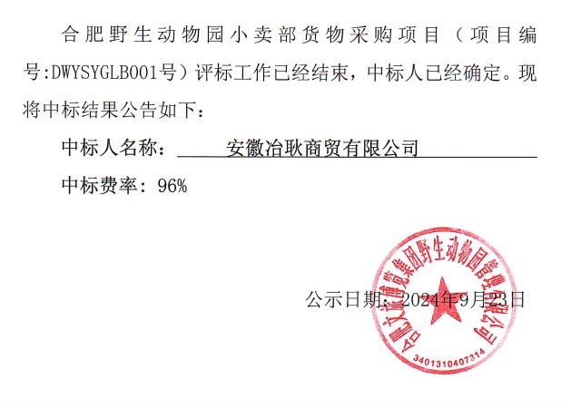 合肥野生動(dòng)物園小賣部貨物采購項(xiàng)目中標(biāo)結(jié)果公告