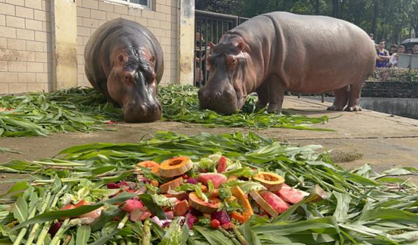 10月2日是河馬“二胖”的生日,合野將開展“我為河馬過生日”活動,一起來給它做個“生日蛋糕”吧,記得要聽飼養(yǎng)員講解、根據(jù)河馬食譜制作哦!臨走前,別忘了給它留下美好的生日祝福。