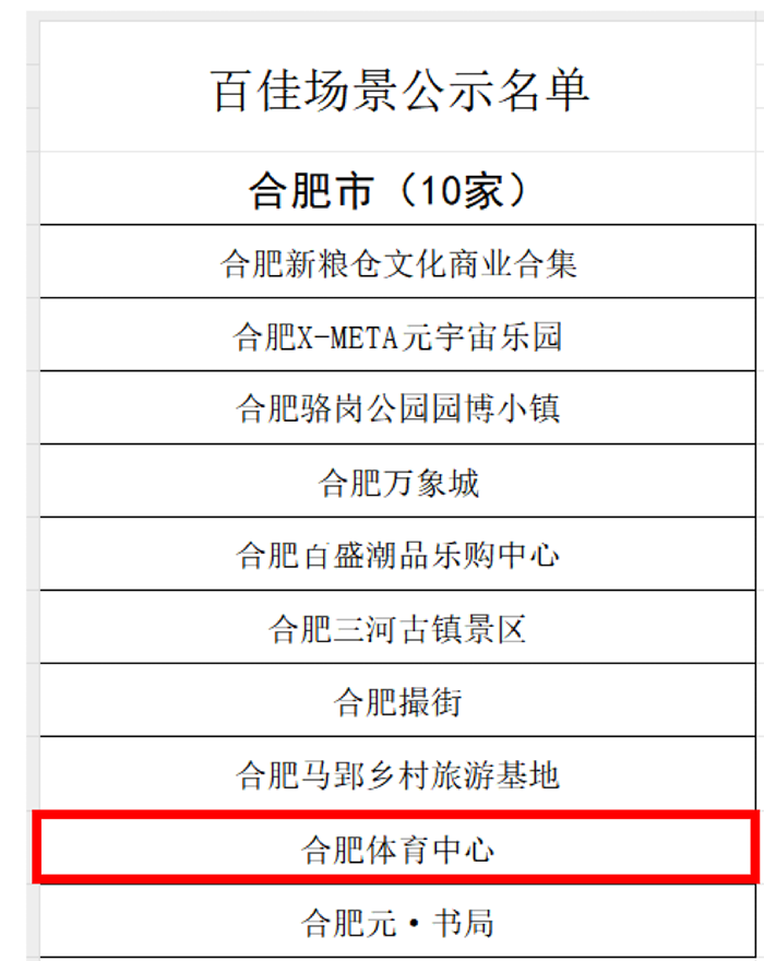 自七月份活動(dòng)啟動(dòng)以來(lái),共有337家場(chǎng)景企業(yè)申報(bào)參與,經(jīng)過(guò)市縣遴選、區(qū)域比選、線上投票、專家評(píng)議等流程,共評(píng)選出“悅在運(yùn)動(dòng)”等十大領(lǐng)域皖美消費(fèi)新場(chǎng)景100家。其中,合肥體育中心光榮上榜!