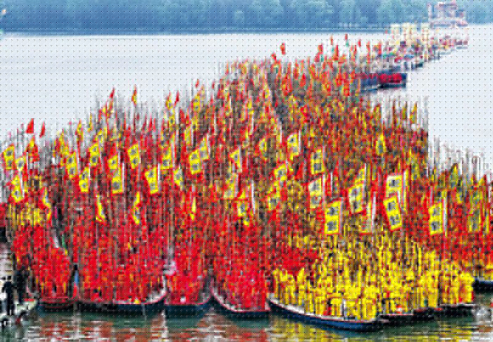 2024年4月6日,泰州姜堰溱潼會船在江蘇省泰州市姜堰區(qū)溱湖國家濕地公園開幕,數(shù)百條各式各樣的船只和上萬名會船選手云集溱湖,飛篙走槳,奮勇爭先,呈現(xiàn)“千篙萬槳鬧溱湖,百舸爭流逐春潮”的壯觀場景,演繹歷久彌新的民俗畫卷。溱潼會船由南宋相沿至今,歷經(jīng)數(shù)百年傳承,被列入國家級非物質(zhì)文化遺產(chǎn)名錄。圖為當日參加溱潼會船表演的船只在湖面上整裝待發(fā)。 新華社發(fā) 顧繼紅/攝