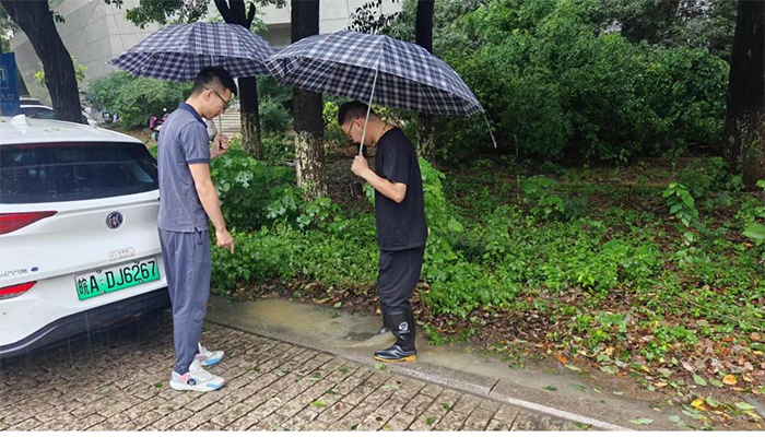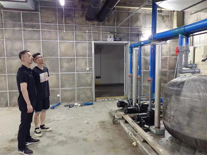 檢查游泳館屋頂藤蔓蔓延下垂,存在安全風險