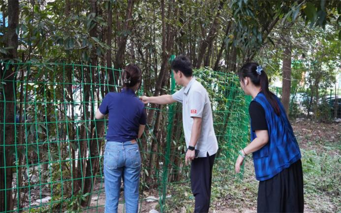 游泳館南側(cè)護欄損壞,現(xiàn)場報修并做簡單圍擋