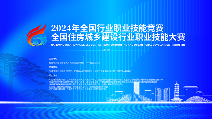 本次大賽是全國(guó)住建行業(yè)首次舉辦的全行業(yè)綜合性國(guó)家級(jí)大賽,規(guī)格高、規(guī)模大,為國(guó)家一類職業(yè)技能大賽。大賽由住房城鄉(xiāng)建設(shè)部、人力資源和社會(huì)保障部、中華全國(guó)總工會(huì)共同主辦,全國(guó)決賽由安徽省住房和城鄉(xiāng)建設(shè)廳、安徽省人力資源和社會(huì)保障廳、安徽省總工會(huì)及合肥市人民政府承辦。