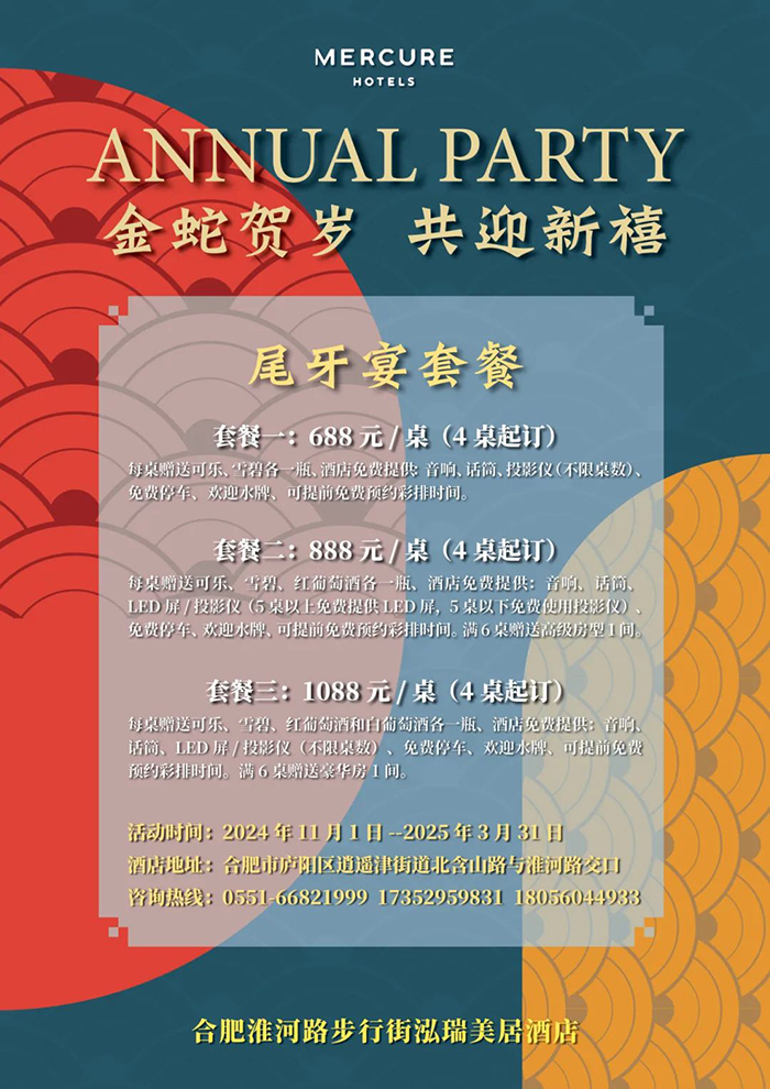 合肥文旅連鎖酒店尾牙宴/春茗會(huì)火熱預(yù)定中各種類型場(chǎng)地滿足不同規(guī)格年會(huì)的需求