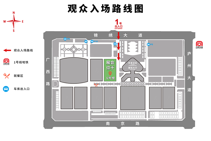 1. 觀眾請(qǐng)由上圖所示錦繡大道1號(hào)道口進(jìn)出參觀。2. 自駕車輛請(qǐng)按現(xiàn)場(chǎng)指引前往地下停車場(chǎng)有序停放。