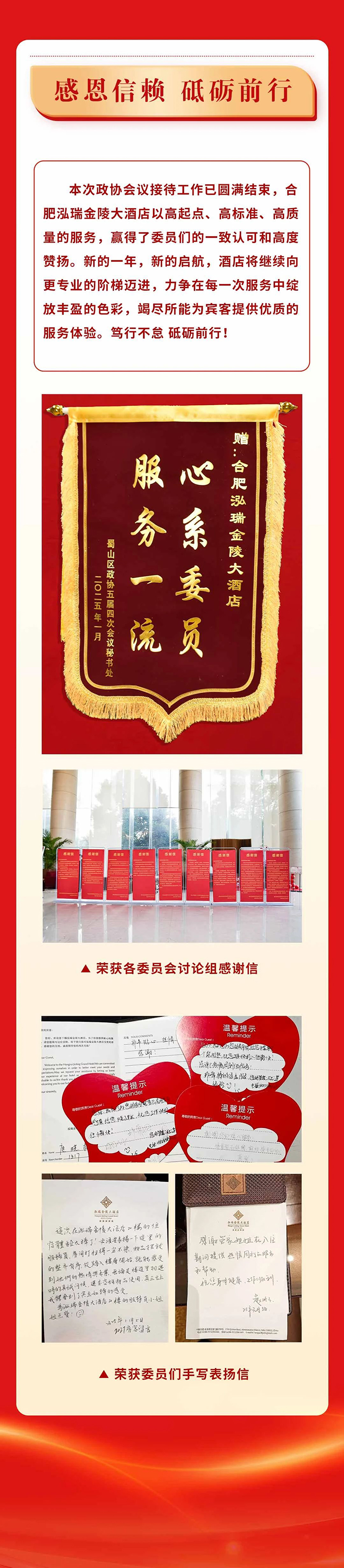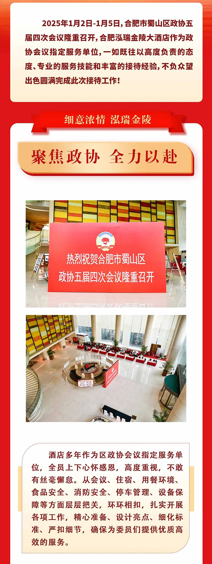 聚焦政協(xié) 全力以赴 | 泓瑞金陵大酒店圓滿(mǎn)完成合肥市蜀山區(qū)政協(xié)五屆四次會(huì)議接待工作