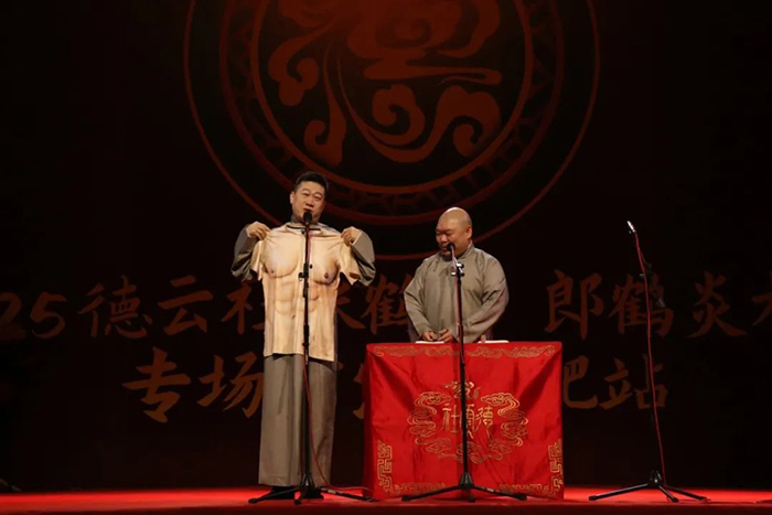 樊霄堂、張霄帥劉鶴春、關(guān)鶴柏分別帶來(lái)了《禮儀漫談》、《玉春堂》以其精湛的表演為整場(chǎng)演出增光添彩