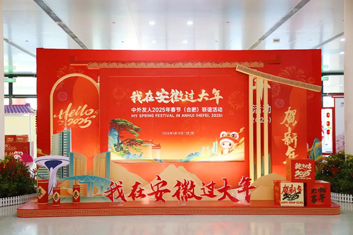 政文護(hù)航勇戰(zhàn)告捷政文國(guó)際會(huì)展管理有限公司在本次“我在安徽過大年”——2025中外友人迎新春(合肥)聯(lián)誼活動(dòng)中擔(dān)任了整體運(yùn)營(yíng)方的關(guān)鍵角色。我司從活動(dòng)籌備的初期階段便開始積極介入,緊密配合安徽省外辦等相關(guān)單位,全面負(fù)責(zé)主視覺設(shè)計(jì)、門樓搭建、氛圍營(yíng)造、舞臺(tái)布置等一系列重要工作。無論是整體設(shè)計(jì)的創(chuàng)意構(gòu)思,還是具體搭建的細(xì)節(jié)落實(shí),我司都展現(xiàn)了極高的專業(yè)水準(zhǔn)和嚴(yán)謹(jǐn)?shù)墓ぷ鲬B(tài)度。此外,公司在會(huì)場(chǎng)氛圍的營(yíng)造上也下足了功夫,通過精心布置和巧妙設(shè)計(jì),確保了活動(dòng)現(xiàn)場(chǎng)無論是航站樓內(nèi)還是南入口處的每一個(gè)角落,都充滿了濃郁的節(jié)日氣氛,洋溢著國(guó)內(nèi)節(jié)慶的喜悅與溫馨。