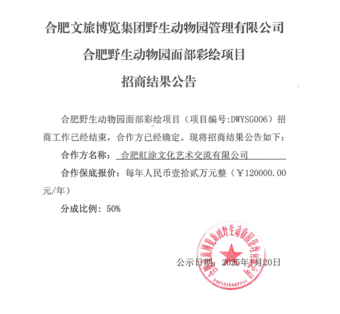 合肥文旅博覽集團(tuán)野生動物園管理有限公司合肥野生動物園面部彩繪項目招商結(jié)果公告