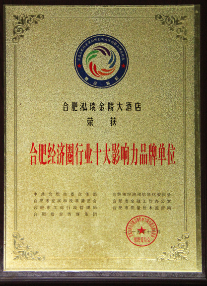 2015年12月9日,“首屆合肥經(jīng)濟圈品牌影響力峰會暨品牌成就展”活動在合肥稻香樓隆重舉行。合肥泓瑞金陵大酒店榮獲“合肥經(jīng)濟圈行業(yè)十大影響力品牌單位”,酒店總經(jīng)理李成勇獲“合肥經(jīng)濟圈行業(yè)十大影響力品牌人物”稱號。